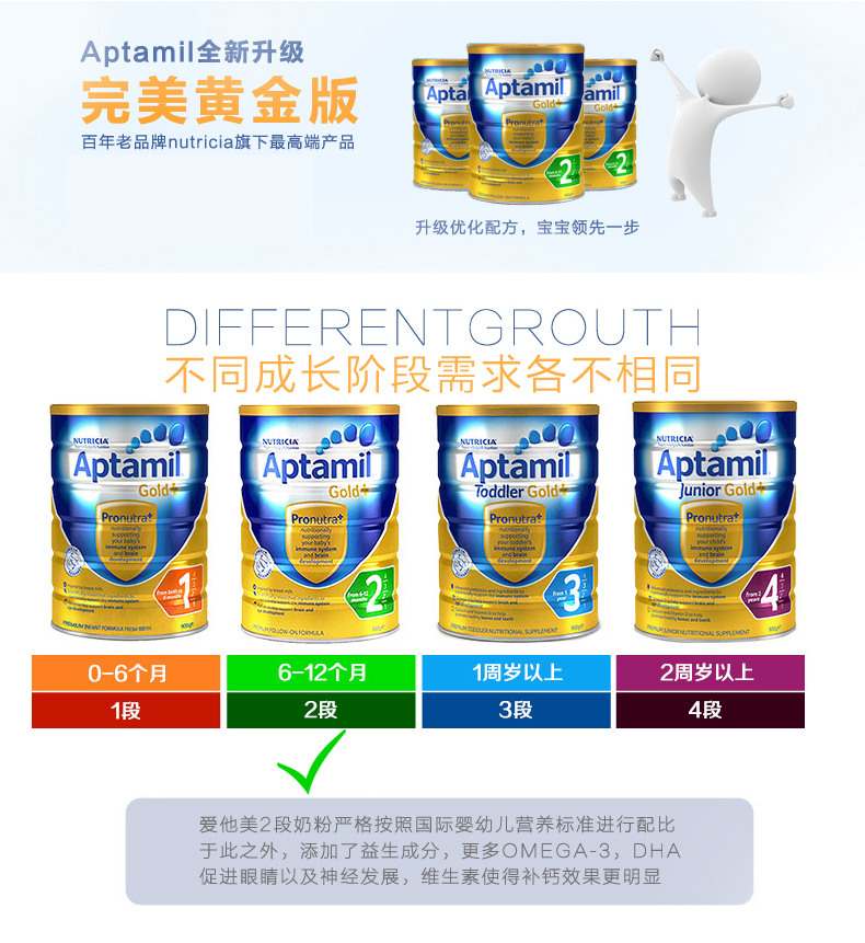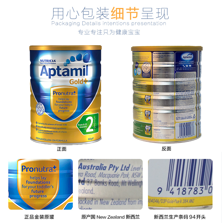 【顺丰新西兰直邮预售】Aptamil GOLD 2 爱他美金装2段奶粉 900g*6罐包邮 保质期2027-08