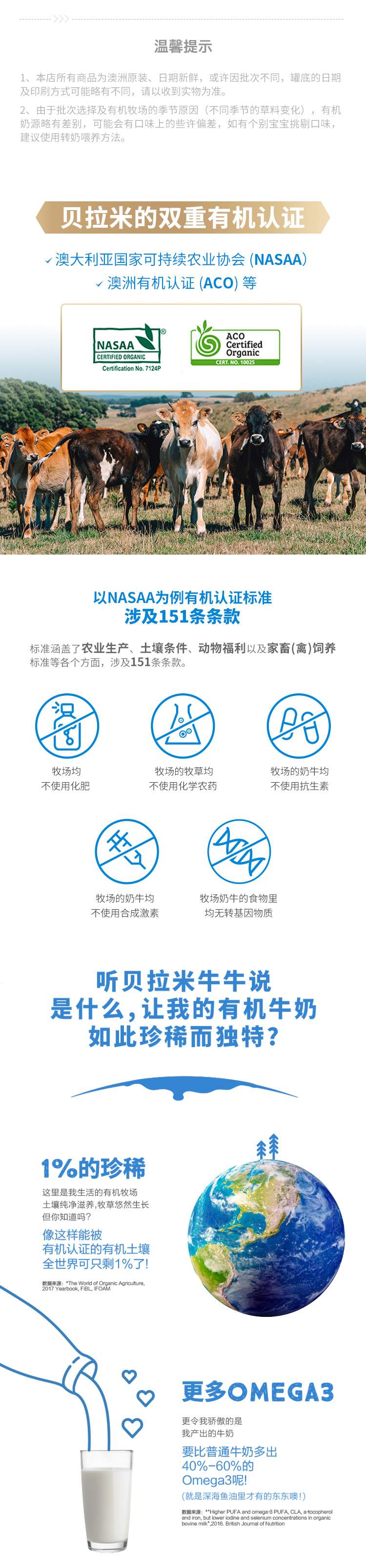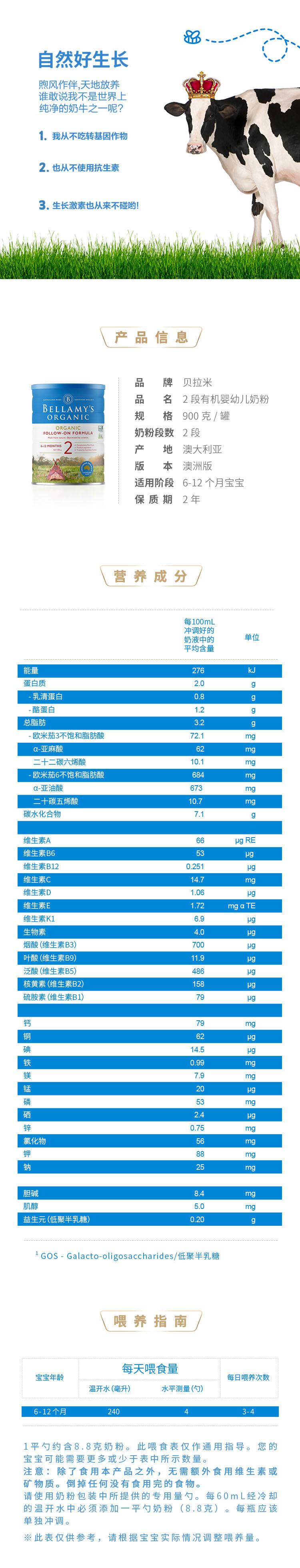 【澳洲直邮】Bellamys 经典有机贝拉米奶粉2段 6个月以上 6罐包邮 保质期2026年5月