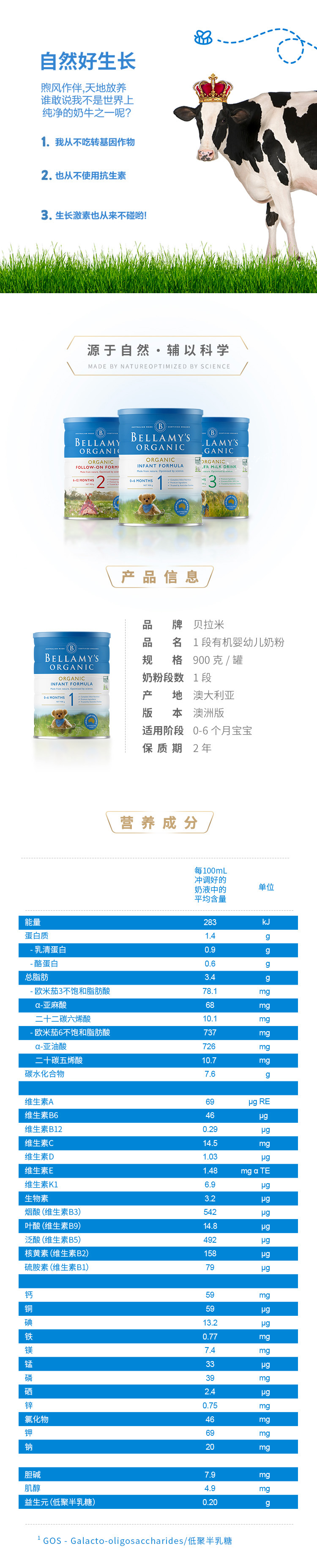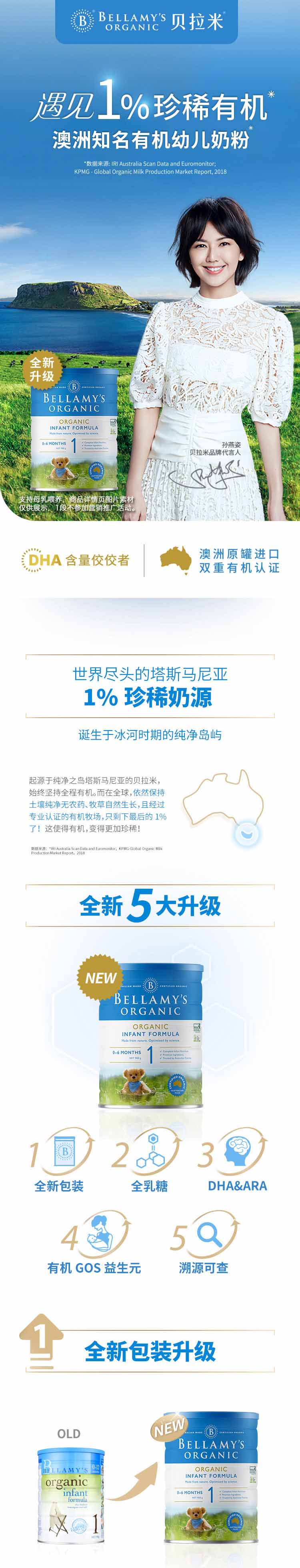 【澳洲直邮】Bellamys 经典有机贝拉米奶粉1段 0-12个月 6罐包邮 保质期2026-03