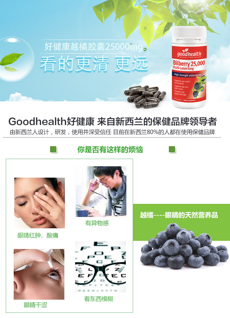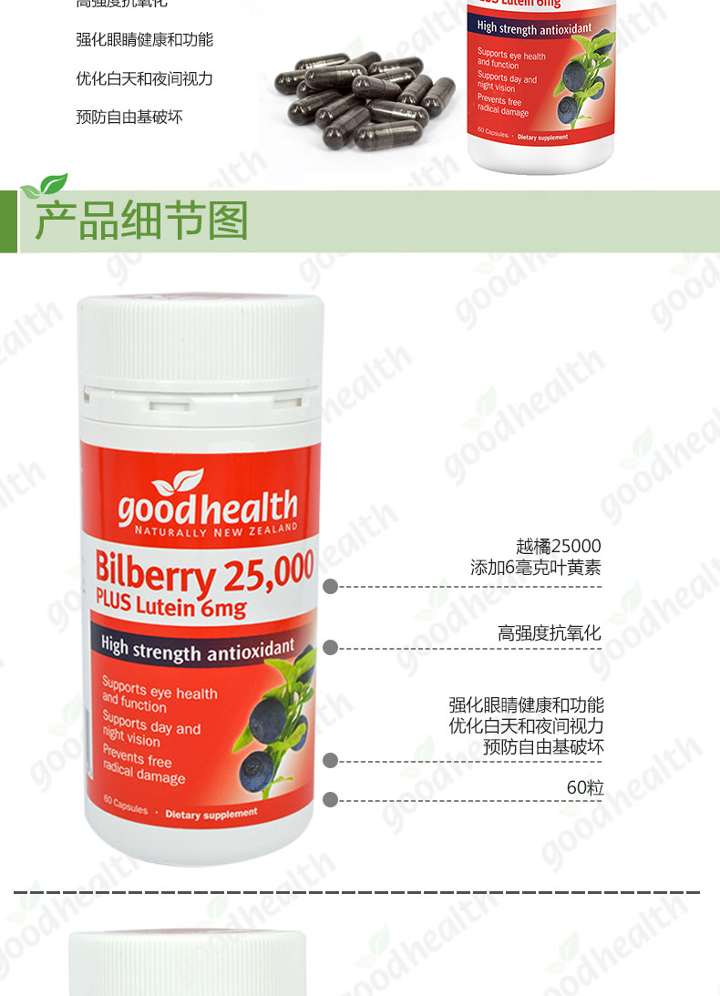【特价特价】goodhealth 好健康高浓度蓝莓胶囊(含叶黄素6mg) 60粒 保质期 2026年4月