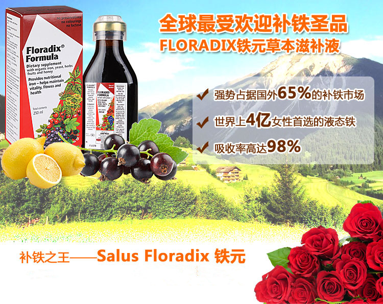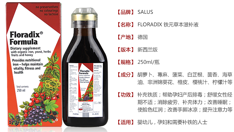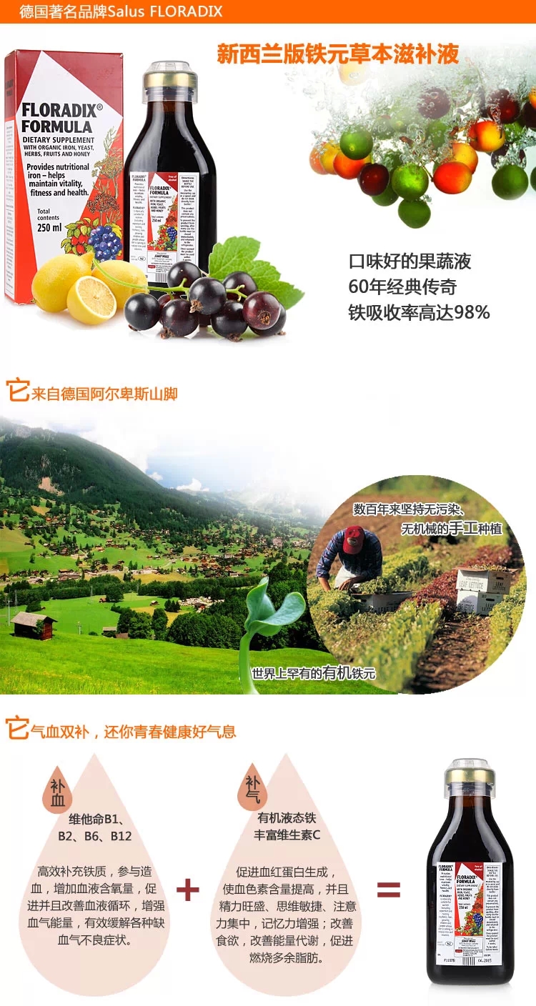 【包邮】red seal 红印牌Floradix 有机补铁液铁元500毫升