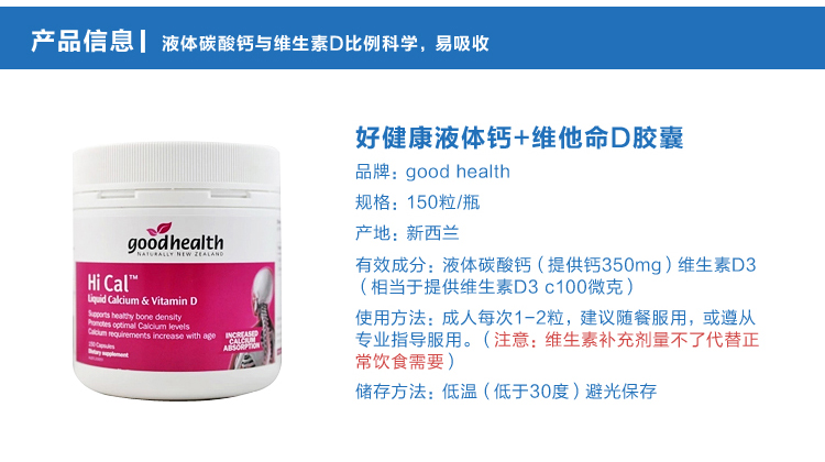 【产品名称】 GoodHealth 好健康 高钙 液体钙加VD150粒