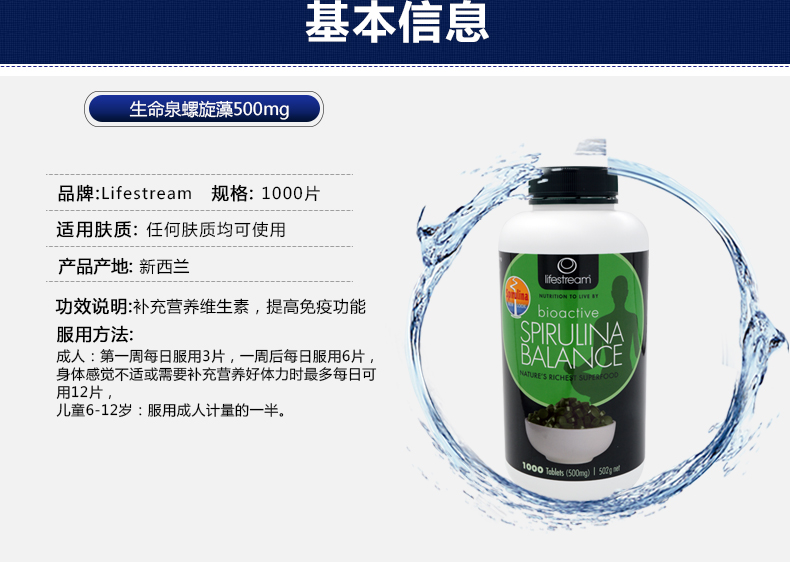 Lifestream 生命泉 活性螺旋藻片 500毫克 1000片