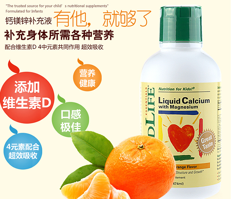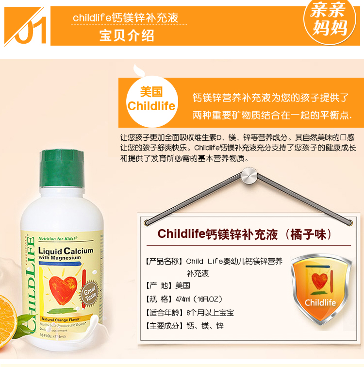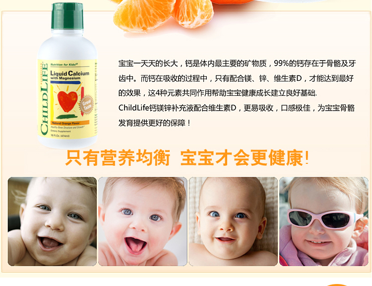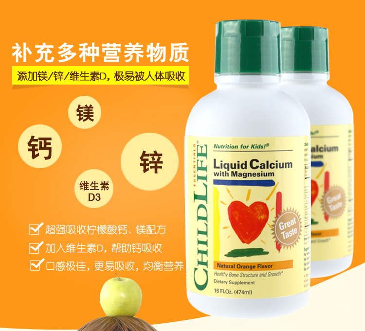 【产品名称】 Childlife 童年时光 钙镁锌补充液 474ml
