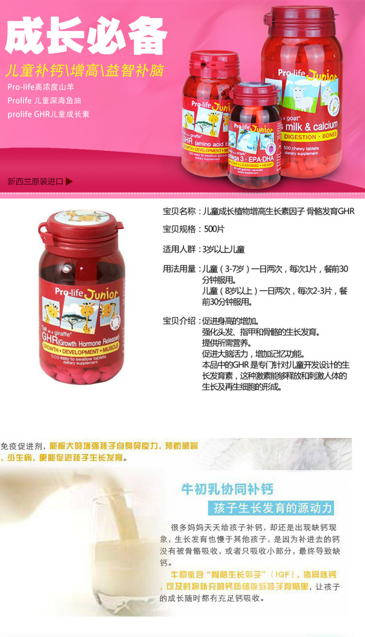Pro-life 儿童成长素 帮助生长发育 500粒