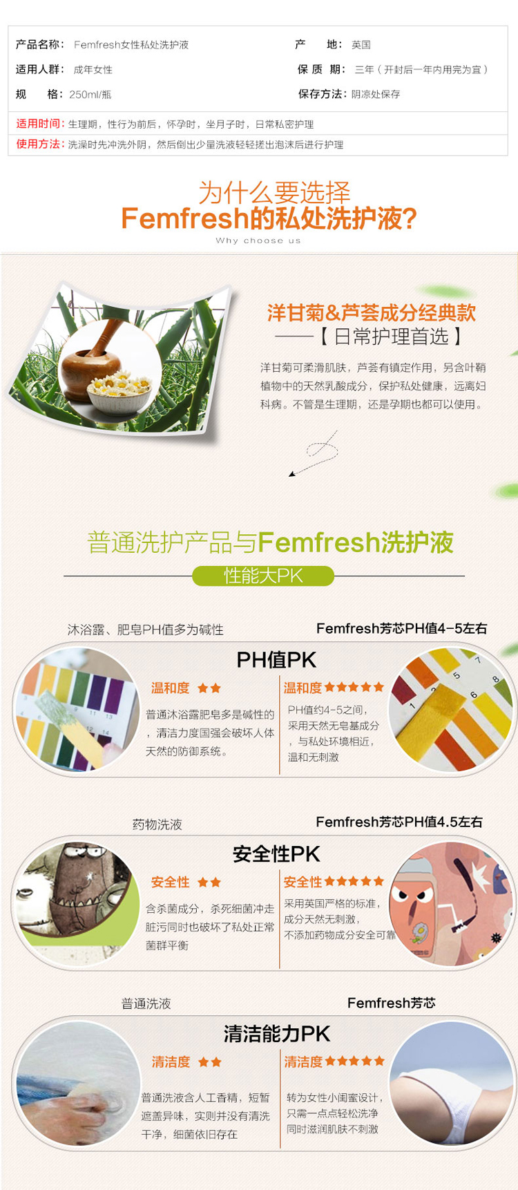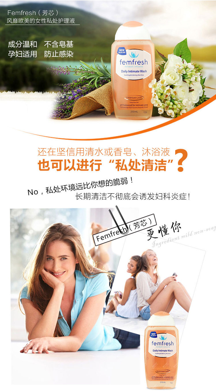 Femfresh女性洗液 护理液 250毫升 白色瓶 三倍功效私处除味
