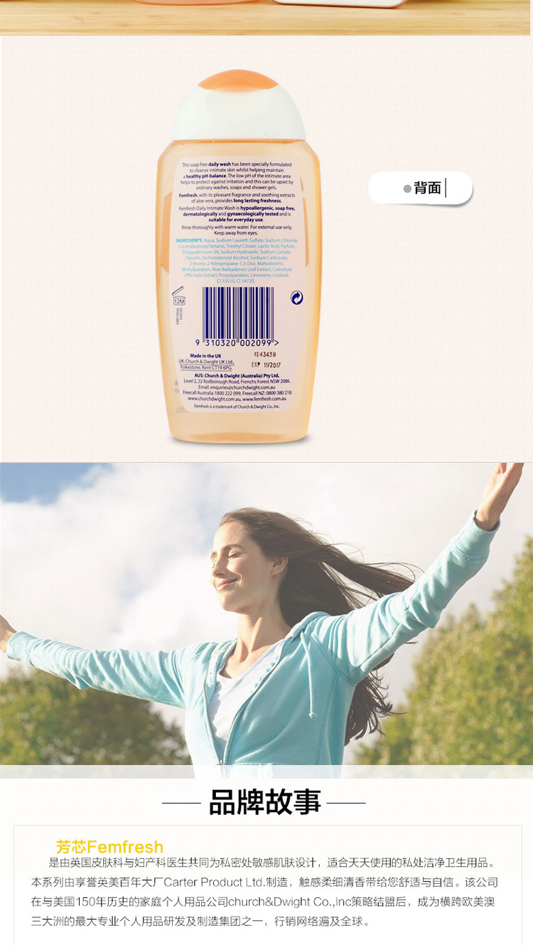 Femfresh女性洗液 护理液 250毫升 透明瓶 去除异味孕妇适用