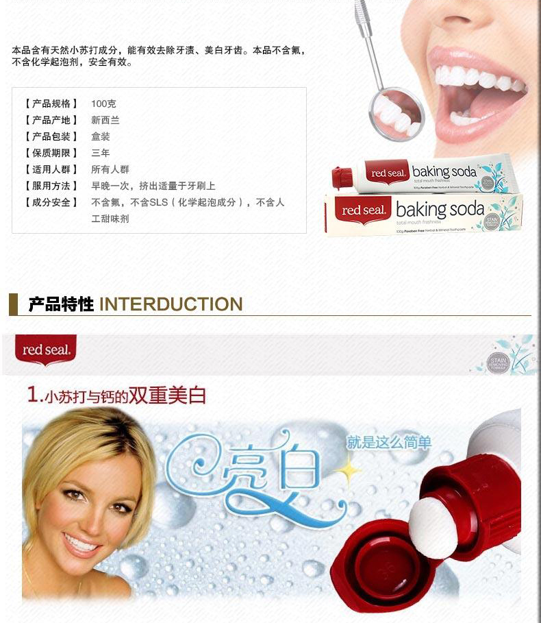 red seal 红印牌天然苏打牙膏100g