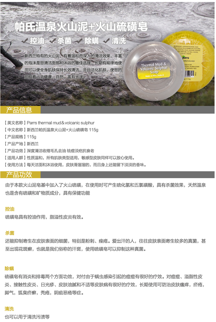 Parrs 帕氏火山泥硫磺二合一香皂 115g