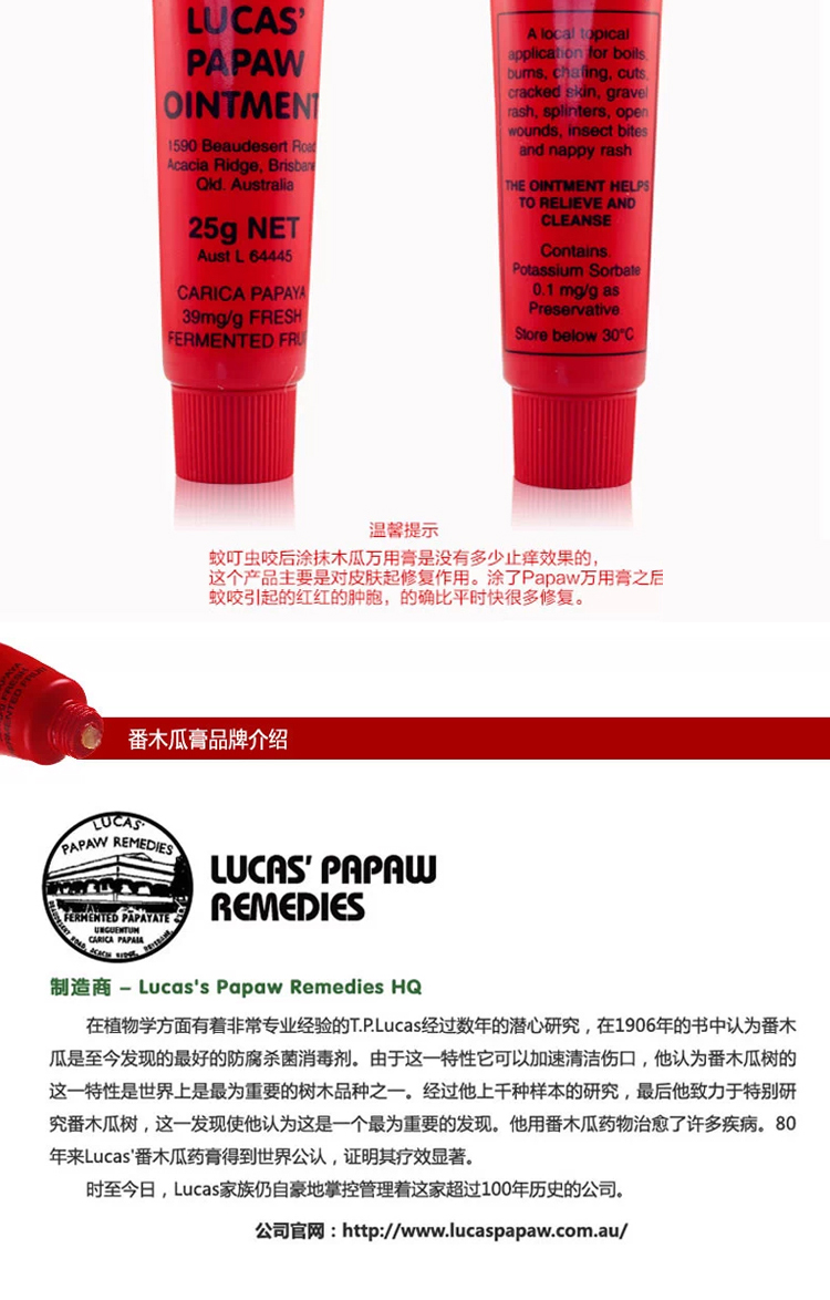 【产品名称】 LucasPaPaw 神奇木瓜万用膏 25g