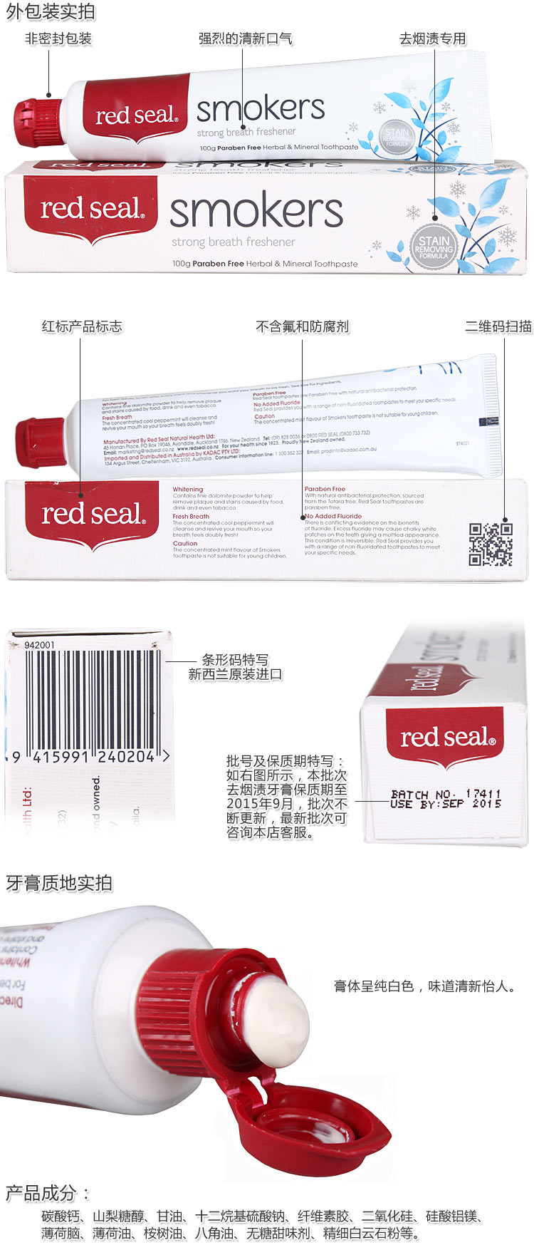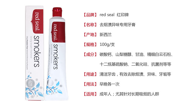red seal 红印牌天然吸烟者专用牙膏100g