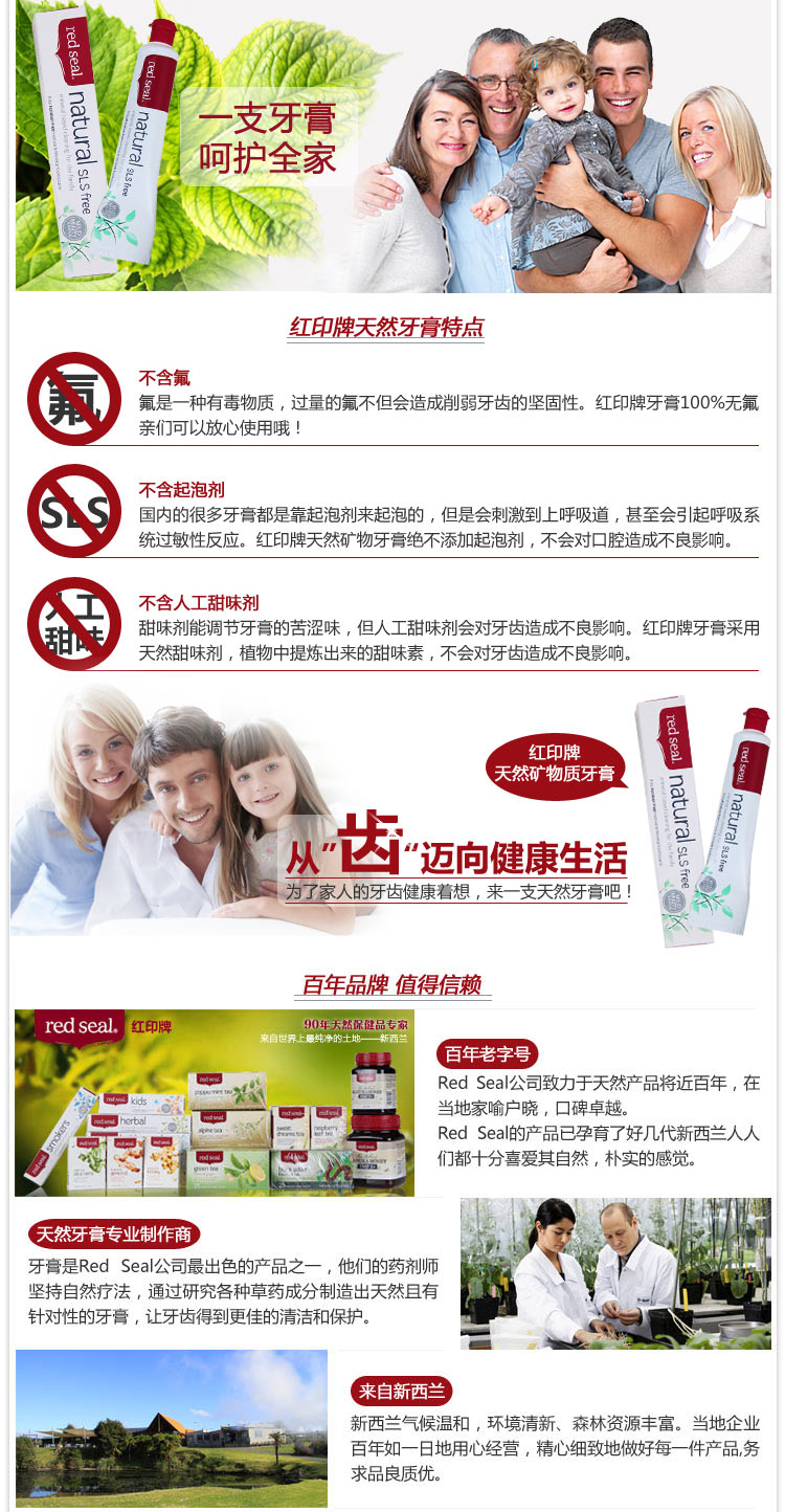 red seal 红印牌天然基础配方牙膏110g