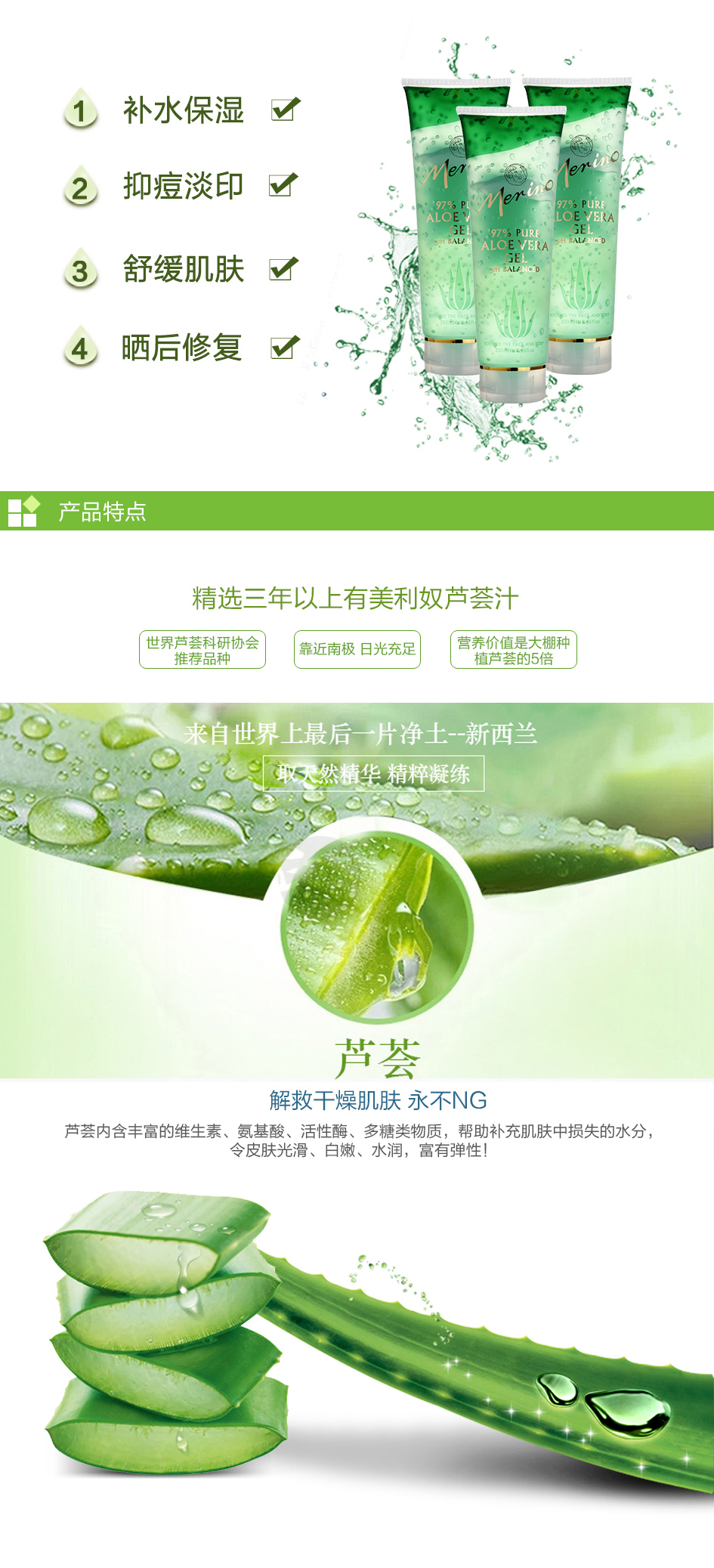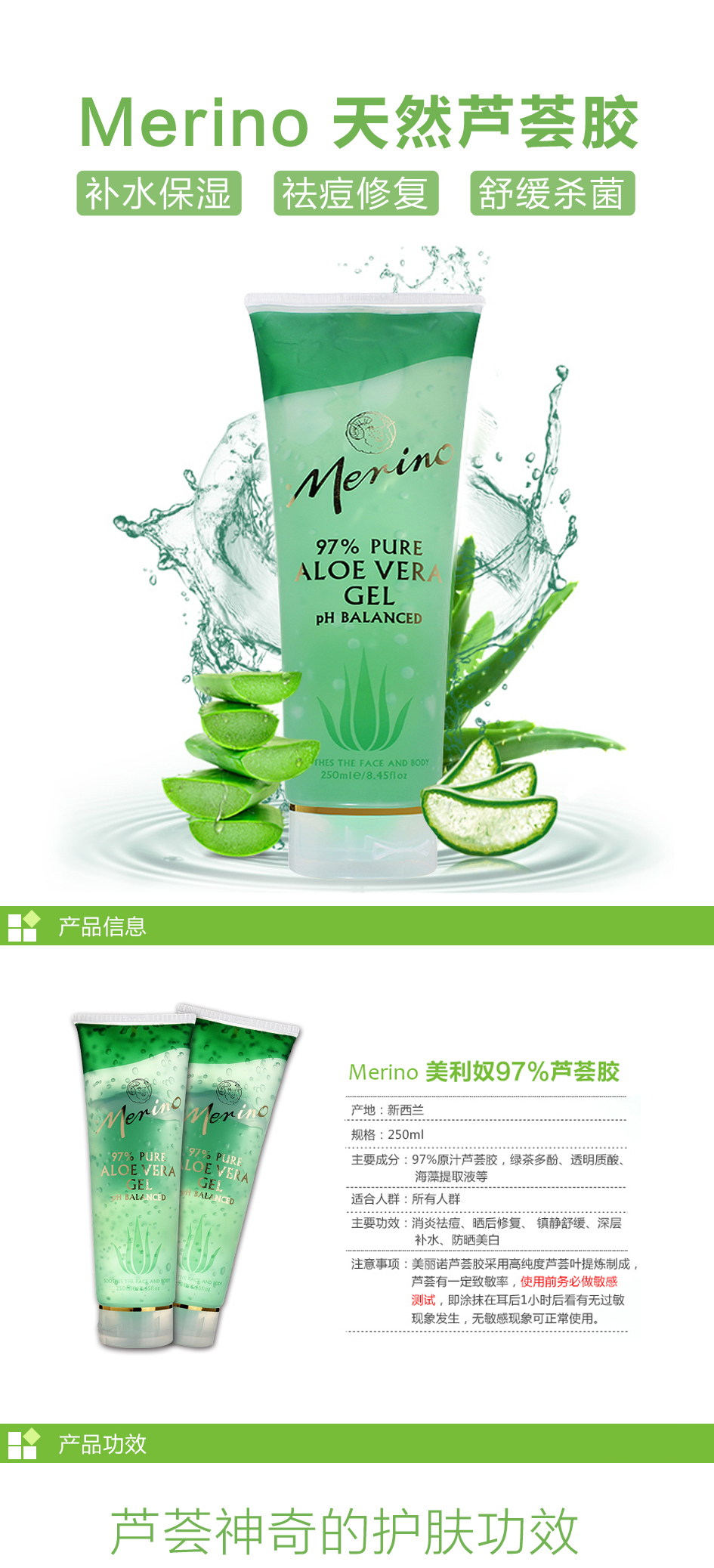 Merino 美丽诺97%纯芦荟胶 万用膏 祛痘消炎 晒后修复 250g