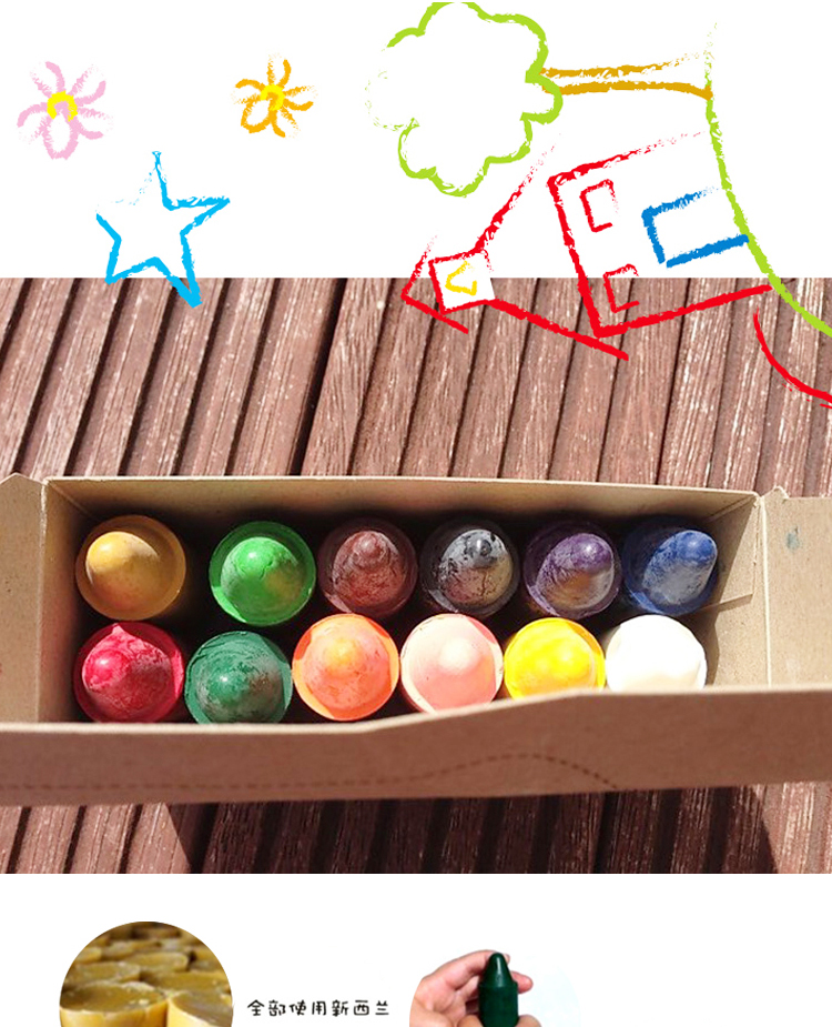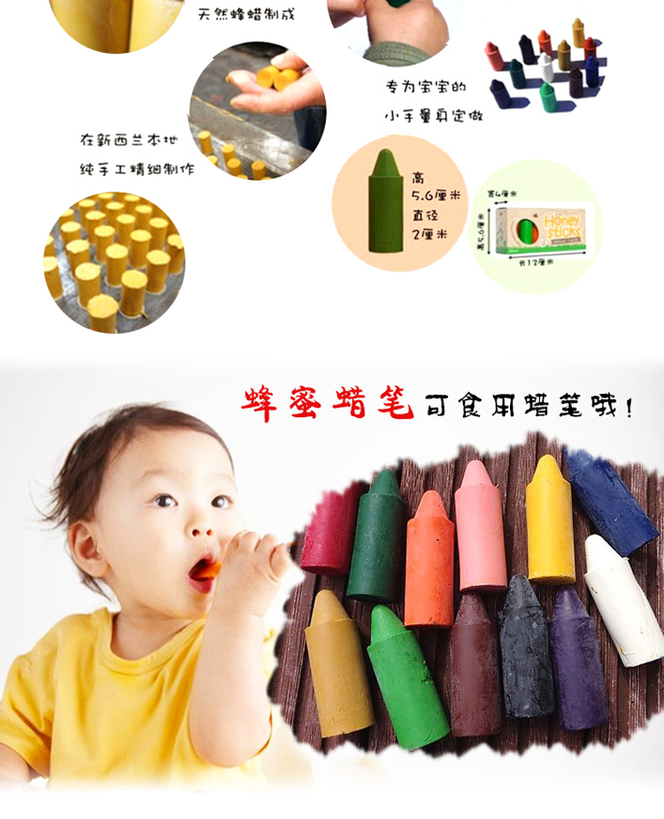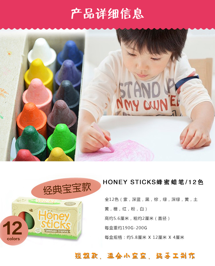 Honey Sticks纯手工天然蜂蜡笔 12色装 190g