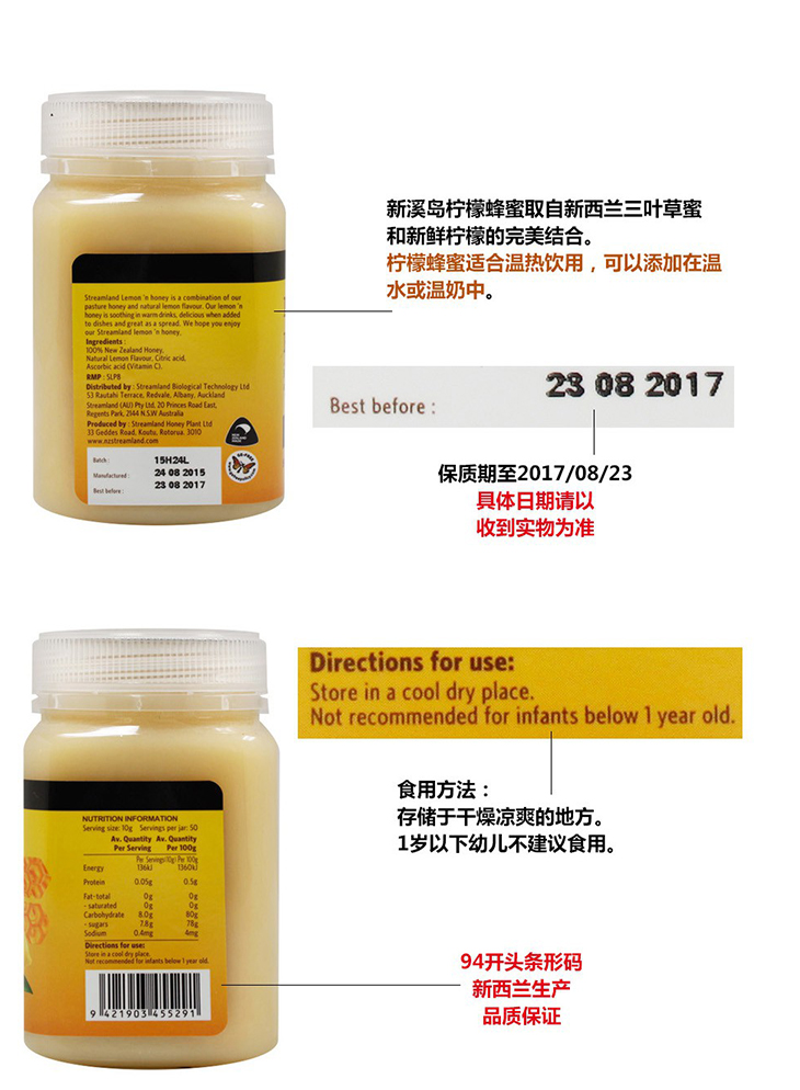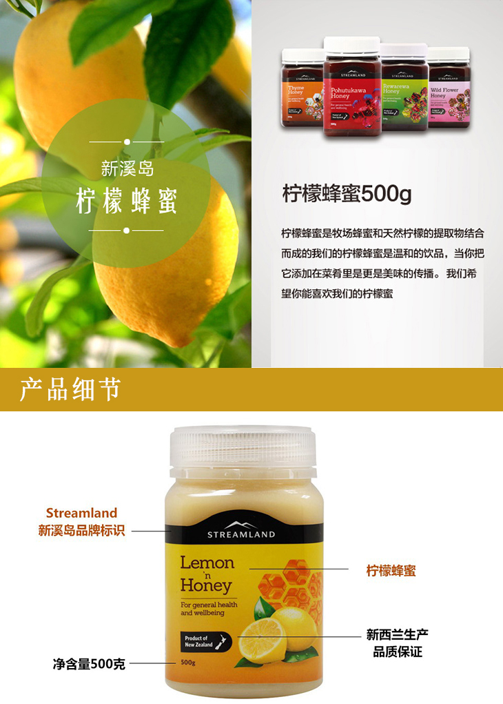 新西兰STREAMLAND新溪岛柠檬蜂蜜500g