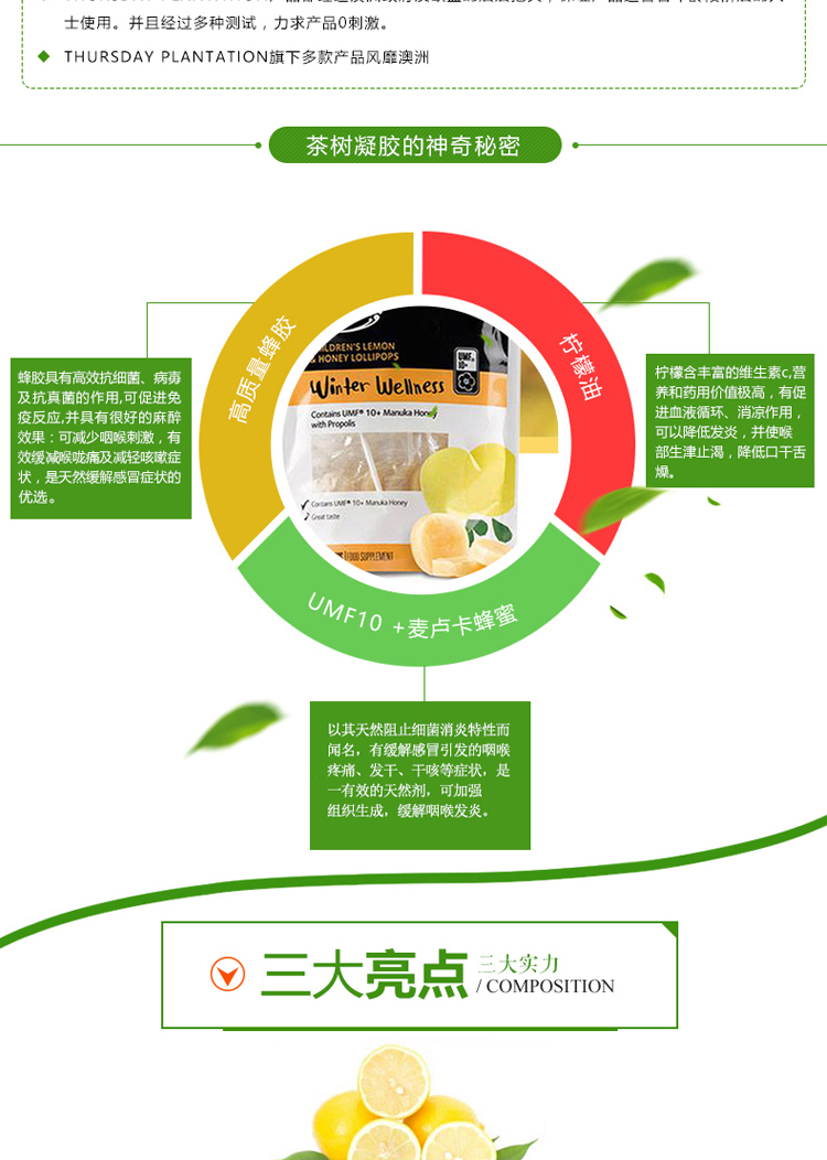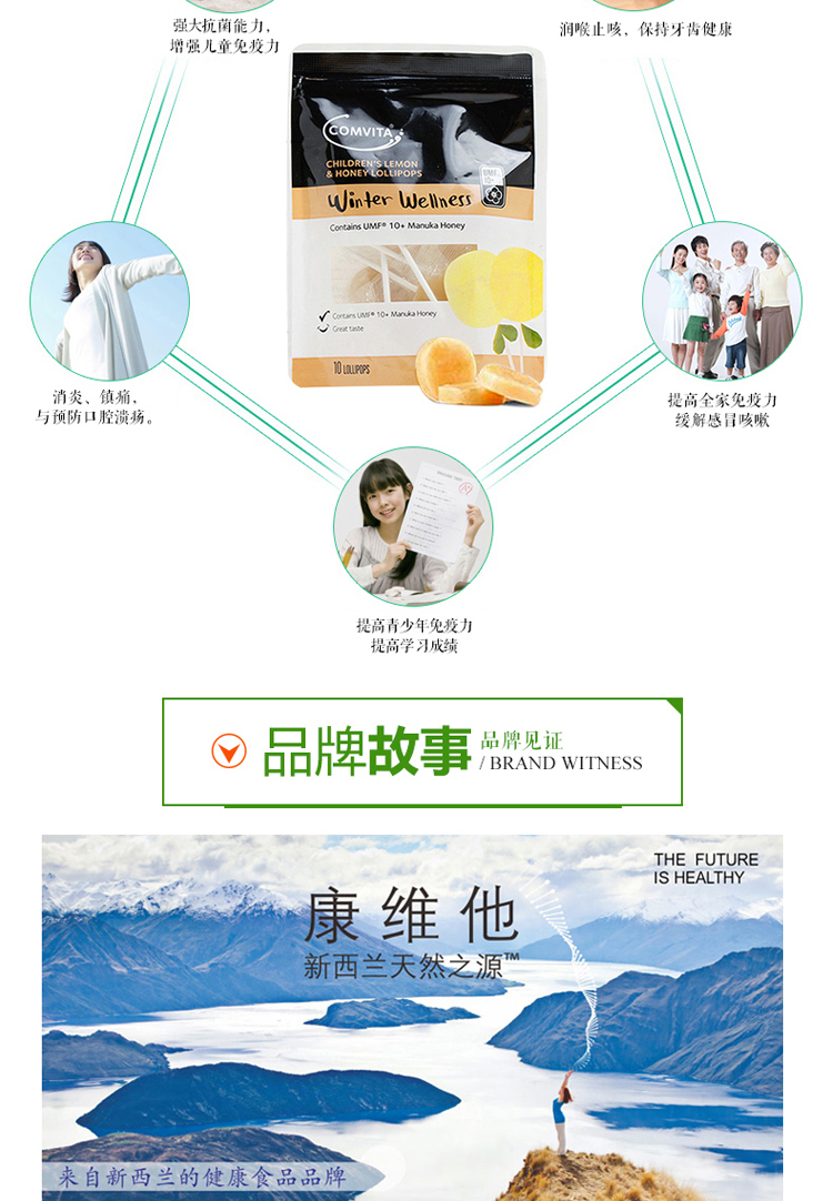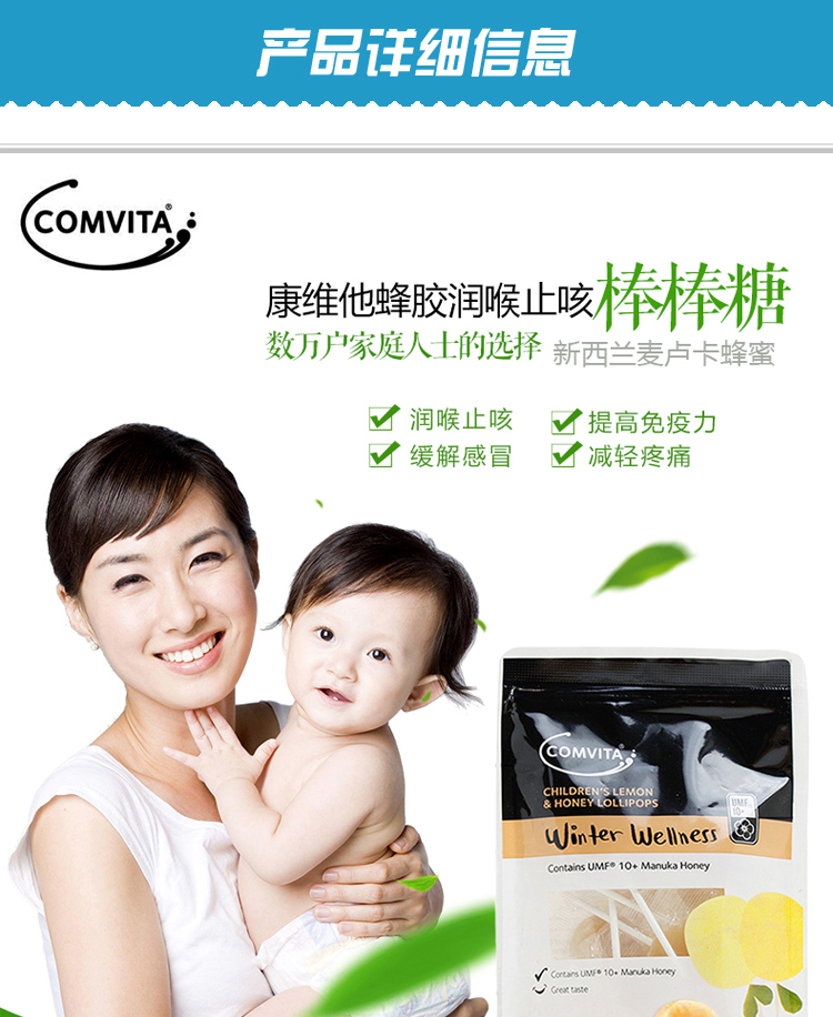 Comvita 康维他UMF10+儿童柠檬蜂蜜蜂胶棒棒糖 15个一包