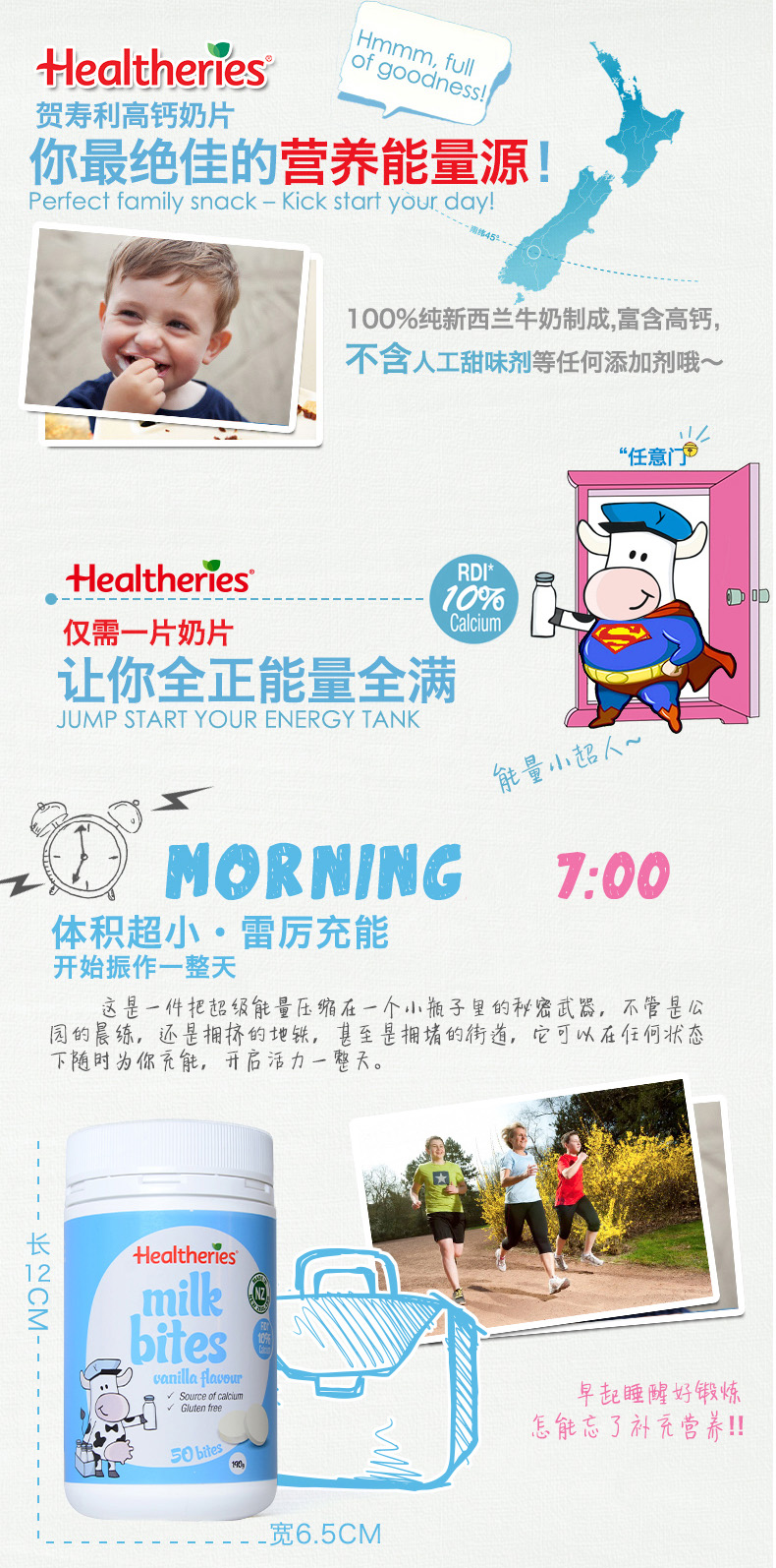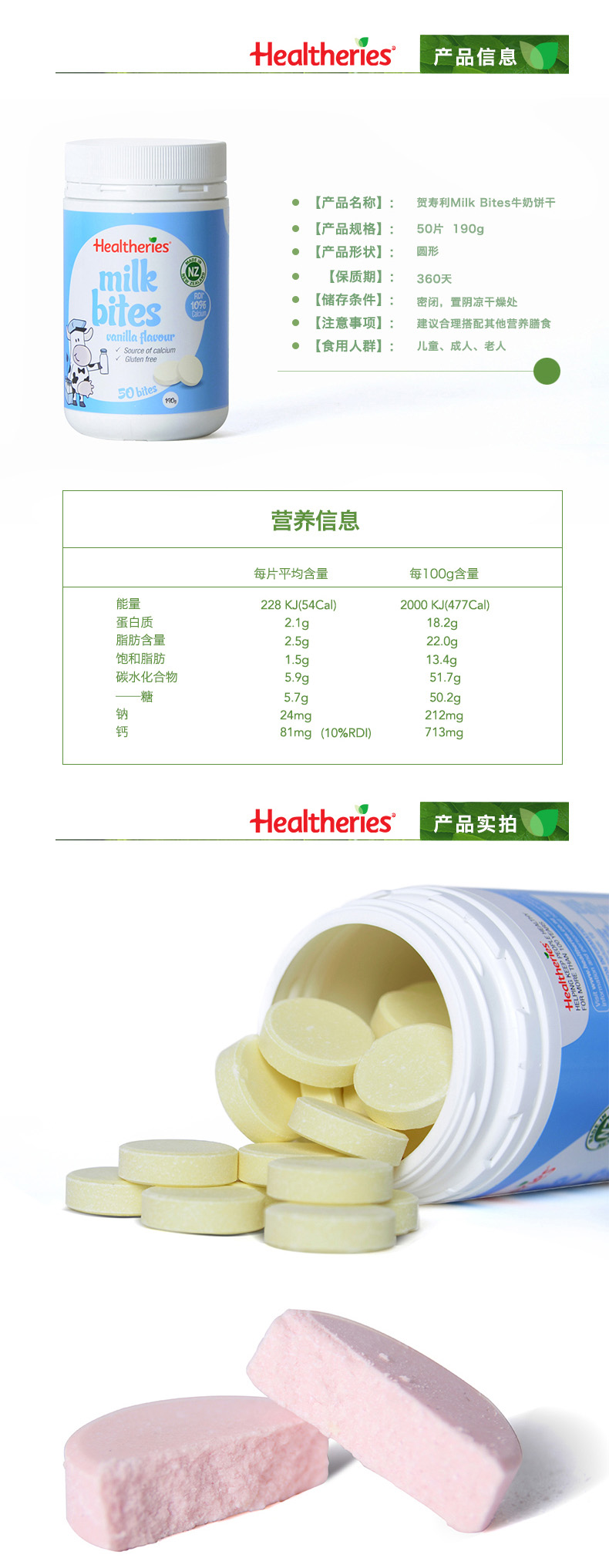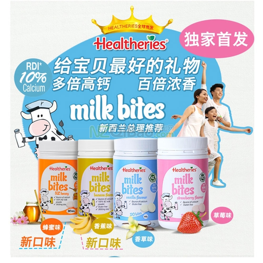 Healtheries 贺寿利罐装奶片50片(香草/草莓/香蕉/蜂蜜)
