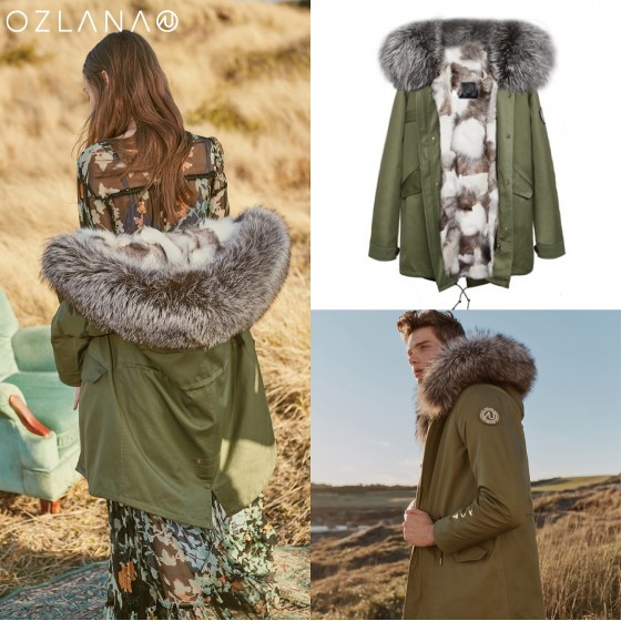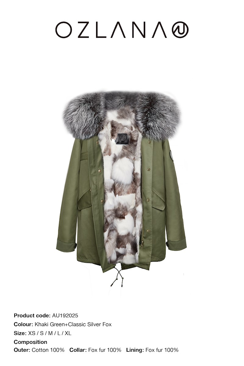 OZLANA AU 时尚皮草大衣 军绿色外壳 经典银狐狸毛 AU192025